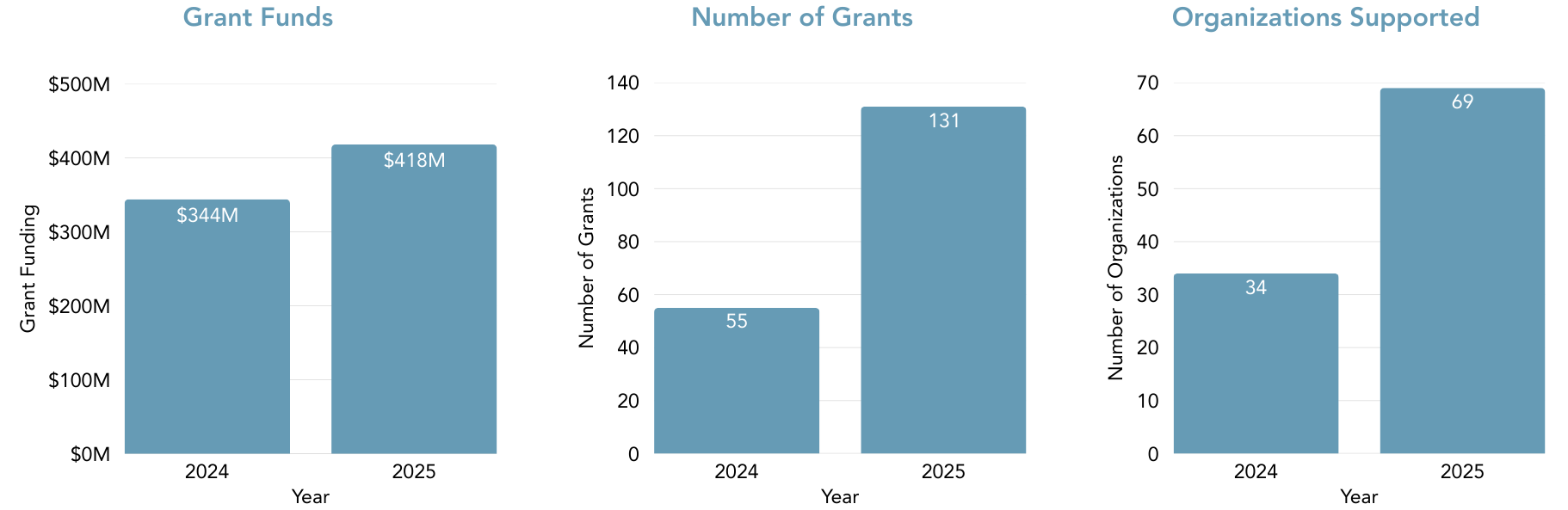 Last year’s grantmaking reflects this growth: Between February 1, 2025, and January 31, 2026, GiveWell approved $418 million in grants to save and improve lives as much as we can. This funding was directed via 131 grants to 69 organizations—more than double the number of grants and double the number of organizations from the prior year.